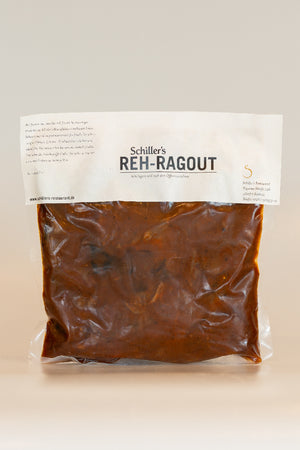 Unser Rehragout ist ein echtes Festessen. Es ist fein zubereitet: aus zartem Rehfleisch mit getrockneten Pilzen, Zwiebeln und erlesenen Gewürzen. Der Schuss Rotwein und etwas Preiselbeermarmelade geben diesem Gericht den nötigen Pfiff. Es schmeckt aufgewärmt sogar noch besser. Servieren Sie frische Spätzle, Rotkohl oder, noch einfacher, etwas sahniges Selleriepüree dazu.