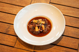 Rehragout im Vakuumsack in 90°C heißen Wasser 10-15 Minuten erhitzen.